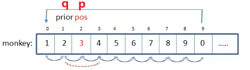 310的整型数组monkey[310]来模拟链表。数组的每个元素存储下一个节点的下标, 形成一个循环链表。 - 初始化数组时, 将前