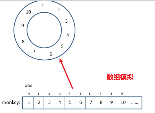 - 使用变量 pos 控制当前报数的猴子位置, count 记录报数。